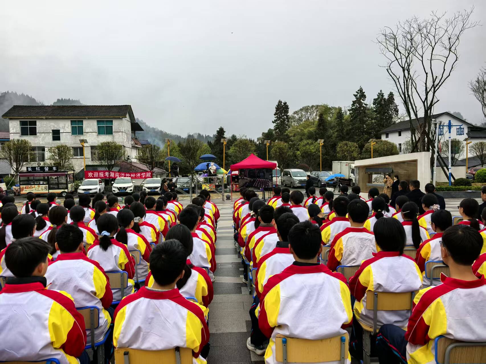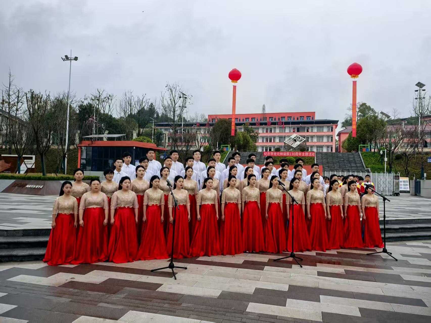 歌声传递信仰,两地师生共同唱响校歌与红色歌曲,桑植县贺龙中学合唱团带来《明天要做祖国的栋梁》,山西省贺龙中学、吕梁学院唱响《我们是毛泽东时代的青年》《保卫黄河》等歌曲,以旋律赓续精神血脉。