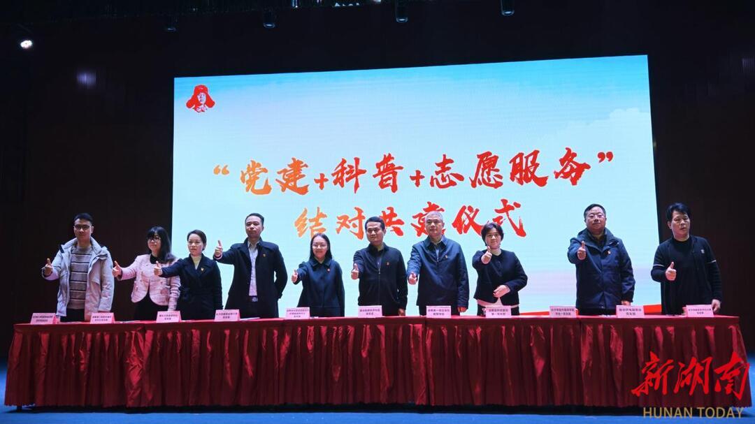 上午9时,赛事开幕式正式拉开帷幕。“党建+科普+志愿服务”结对共建仪式同步举行,长庆社区党总支与湖南省科技信息研究所科普融媒体中心党支部、湖南第一师范学院教育学院等10家共建单位现场签约,凝聚起党建引领、多方联动的科普志愿服务合力,为社区科普工作筑牢坚实基础。