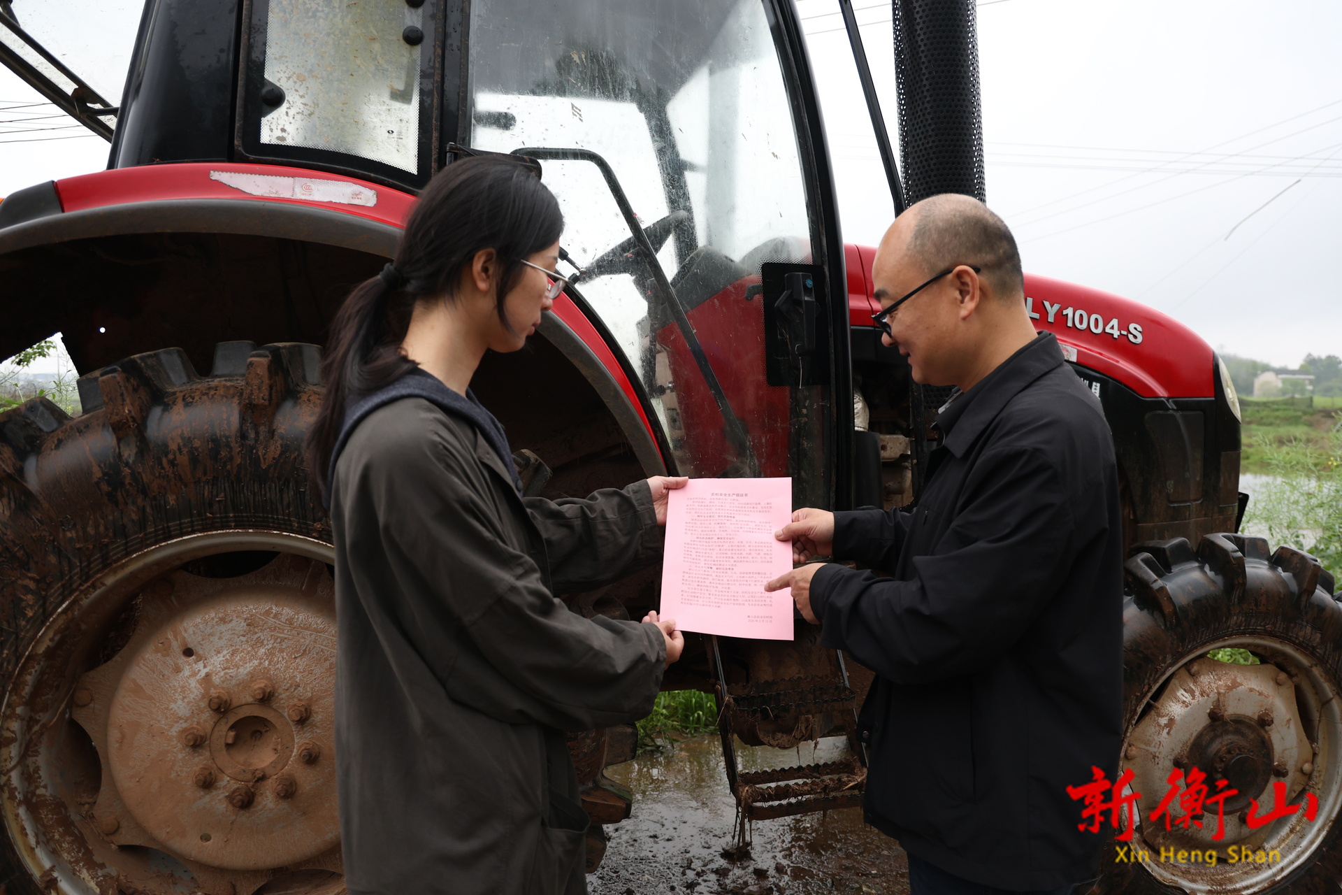 “以前农机年检,要专门开车跑到专门的检测站,排队、办理都要耽误大半天,现在工作人员直接下乡来检测,在家门口就能办完所有的手续,太方便了。现场还帮我们排查农机隐患,讲解安全知识,既省时间又放心。”衡山国丰农机合作社负责人陈紫玲高兴地说。