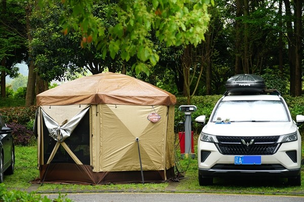 走进各大汽车驿站,色彩斑斓的房车与私家车错落停放,各式帐篷点缀其间。卸下一路疲惫,旅客们正享受着“慢”下来的惬意时光:有人在房车旁料理餐食,烟火气悄然升腾;有人围坐畅谈,欢声笑语漫过营地、飘向峰林;也有人沐着清风漫步,与山间景致温柔相拥。