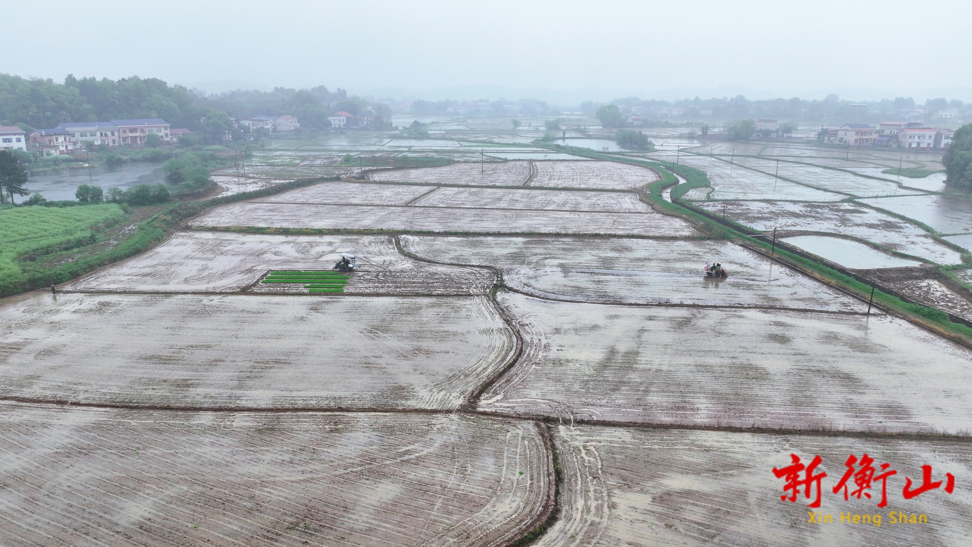 阴雨挡不住春耕脚步,农机轰鸣唤醒田间生机。