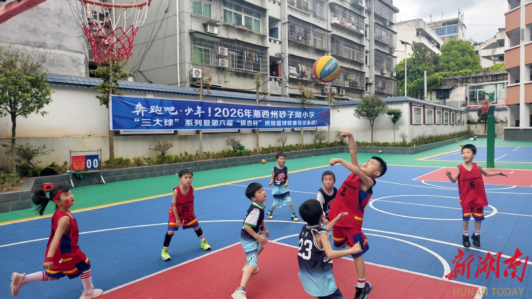 新湖南客户端4月23日讯(通讯员 向泽忠 彭萱 彭彪 彭意)4月23日,奔跑吧·少年2026年湘西土家族苗族自治州砂子坳小学“三大球”系列第六届“银杏杯”班级篮球联赛开幕式举行。全校师生齐聚运动场,以篮球为媒,共赴一场充满活力与拼搏的体育盛会。