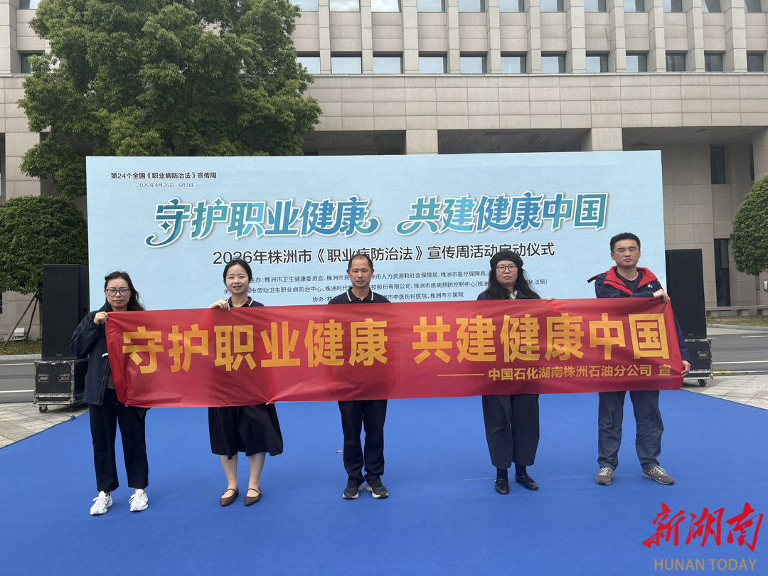湖南日报·新湖南客户端4月27日讯(通讯员 王琛)4月27日上午,由株洲市卫生健康委员会主办的2026年全市《职业病防治法》宣传周启动仪式在株洲时代新材科技股份有限公司举行。活动以“守护职业健康 共建健康中国”为主题,聚焦职业病源头治理、劳动者健康权益保障、企业主体责任落实,全面推进职业健康保护行动落地见效,中国石化株洲分公司作为中央企业代表受邀参会。