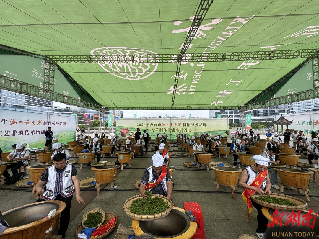 “乡村振兴离不开年轻人,现在我们吉首有个好现象,就是种湘西黄金茶的中青年越来越多。”4月13日15时30分,记者来到湘西土家族苗族自治州吉首市人民广场,观摩2024年吉首市湘西黄金茶非遗传承人炒茶展演暨绿茶制作技能培训,与金茶王石林平聊“茶经”。