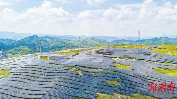 8月27日,涟源市龙塘镇莲花村农光互补光伏发电站,在蓝天白云的映衬下,蔚为壮观。近年,涟源市充分利用石漠化区域建设光伏发电站,有序推进光伏、风电项目建设,实现一山多用,大力发展清洁能源。吴永华 摄(湖南图片库)