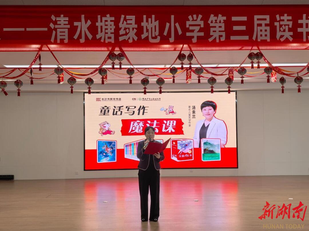 科教新报·新湖南客户端讯(通讯员 刘钧溪)为进一步营造浓厚的校园书香氛围,激发孩子们的阅读兴趣与热情,4月3日,长沙市开福区清水塘绿地小学联合长沙市新华书店举行校园阅读分享会。此次活动特邀中国一级作家、中国作家协会儿童文学委员会副主任汤素兰老师与师生共赴书香之约。活动通过作家分享、互动问答、小记者采访等环节,带领学生感受阅读魅力,播种文学梦想。