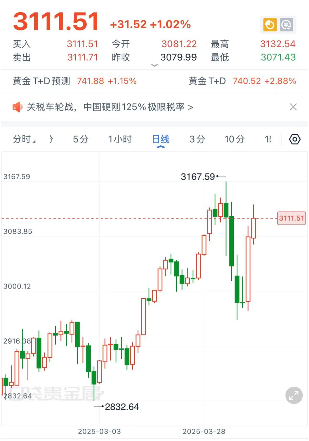 现货黄金重回3100美元
