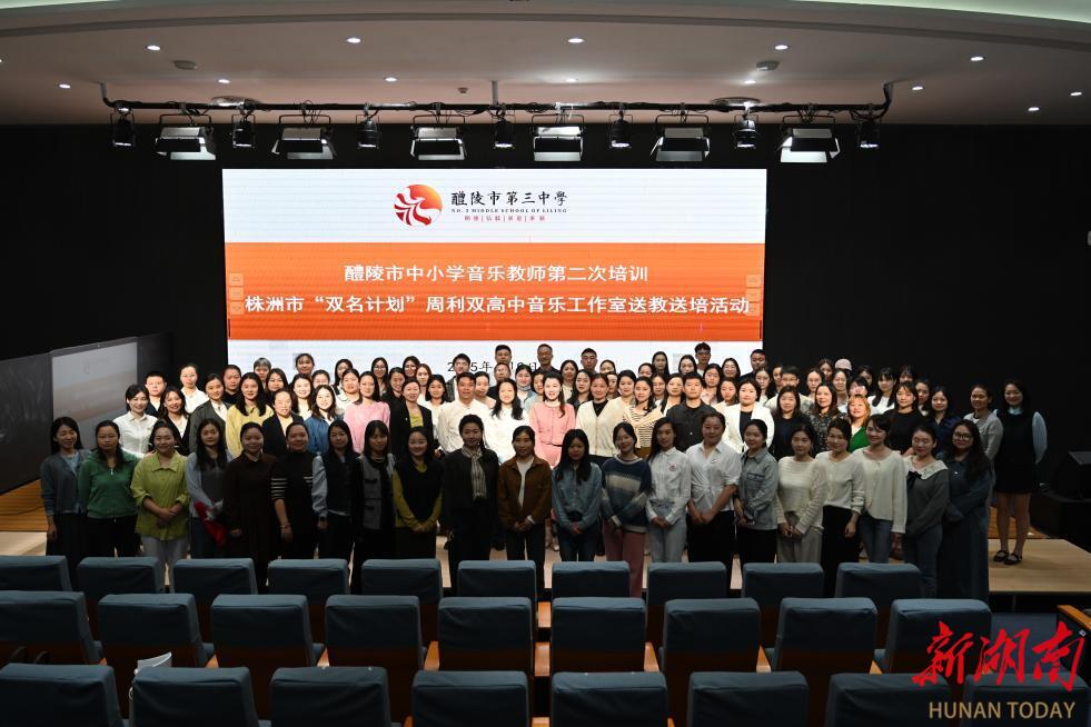 科教新报·新湖南客户端讯(通讯员 袁辉)4月9日,株洲市“双名计划”周利双名师工作室走进醴陵市第三中学,开展了一场以“中国传统音乐鉴赏”为主题的送教送培活动。旨在弘扬中华优秀传统文化,推动传统音乐在基础教育中的传承与发展。本次活动由醴陵市第三中学承办,工作室成员陈珊珊老师担任主持,特邀株洲市教育科学研究院音乐教研员程芳老师现场指导。醴陵市教育局对此次活动高度重视,将其作为全市中小学音乐教师研训的重要平台,百余名音乐教师齐聚一堂,共赴一场传统音乐文化的美育之约。