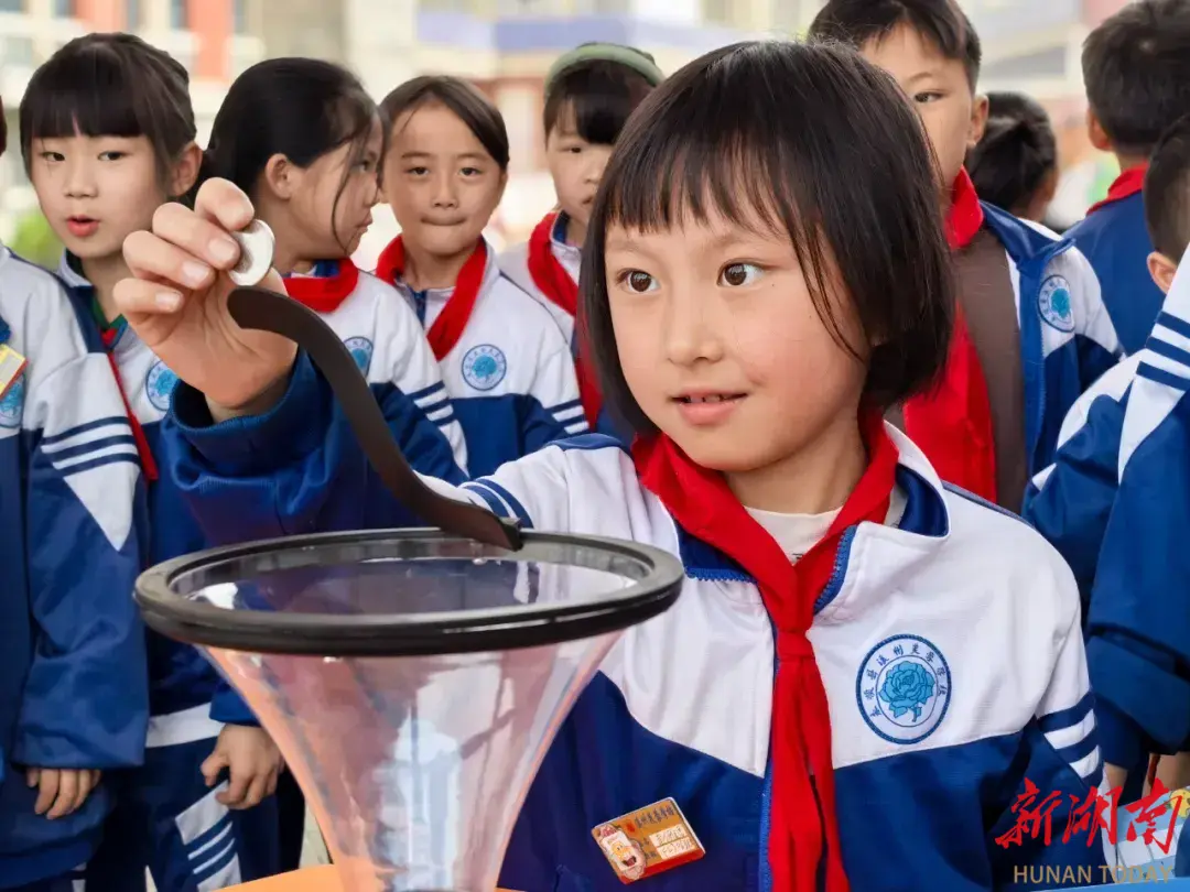 魔法秀环节掀起首个高潮。来自爱牛科技公司的科技辅导员们,通过“超级泡泡”“空气炮”“火焰掌”“大象牙膏”“甩不出去的水”等一系列充满趣味的科学实验,巧妙地将物理、化学知识融入到表演之中。同学们踊跃参与互动环节,现场惊叹声此起彼伏,大家在欢乐与惊奇中深刻领悟到了科学原理的奇妙之处。三年级学生彭一诺激动不已地说道:“原来科学可以这么酷炫!我以后一定要成为一名科学家,探索更多的科学奥秘!”