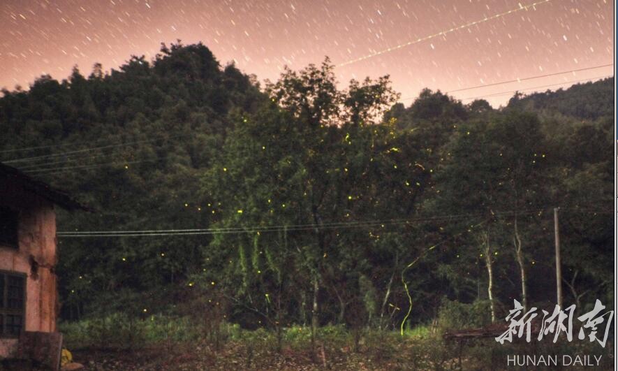 6月5日,平江县嘉义镇连云山村,连云山溪涧边的萤火虫。 湖南日报记者 童迪 摄