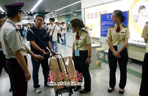 在人检方面,乘客进站时通过安检门对其进行安全检查,包括人工使用金属探测仪等设备安检。