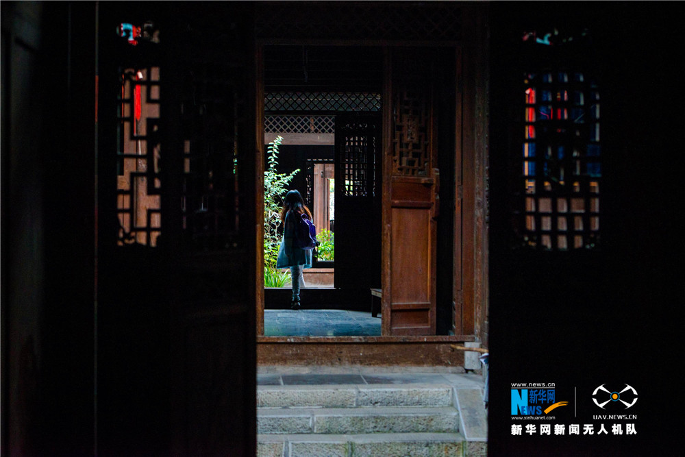 图为无人机航拍濯水古镇,依稀可见原汁原味的吊脚楼与四合院。