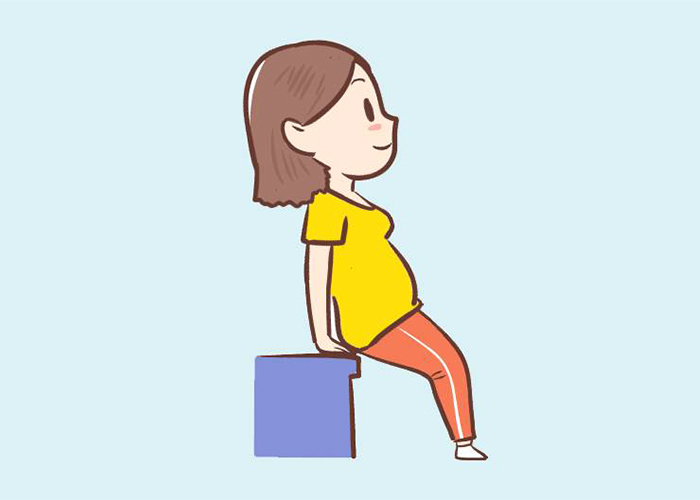 在摸清胎儿背部朝向的情况下,孕妈妈直立于桌前或椅子前,双脚分开至与肩同宽,上身向后倾,双手撑于身后的桌边缘或靠背椅上。