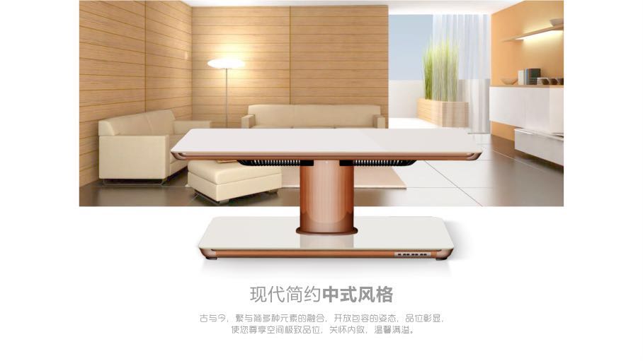 嘉嘉旺电动升降取暖茶几凭借遥遥领先的技术优势,精良的工艺标准,时尚大气的外观设计,牢牢占据着行业的至高点。