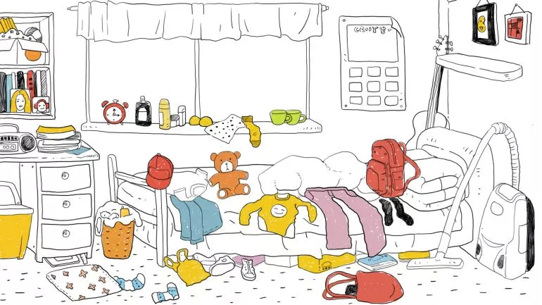 2. 孩子的东西到处都是,房间没法下脚,总是跟在屁股后面收,但是又很快被搞乱。