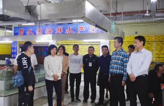 冯海燕一行首先来到白鹿洞街道曹家坪农贸市场,详细了解市场内部基础设施,查看通风、保洁情况。冯海燕强调,要加强管理,进一步完善硬件设施;要加强整改,杜绝超门面经营;要完善激励机制,形成竞争氛围。