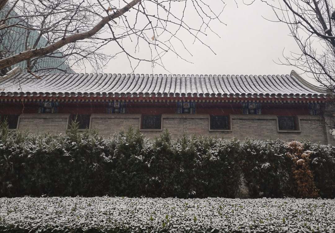 琼花翩然至,瑞雪兆丰年。晨起遇雪,寄寓新年遐思。图为北京大学博雅塔雪景。