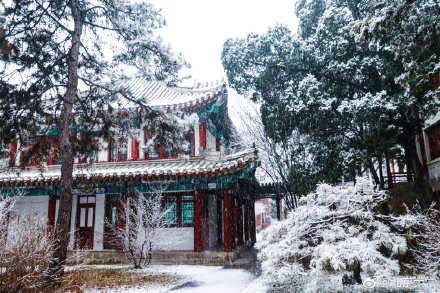 15日,北京迎来今冬第二场全市性降雪,网友纷纷在朋友圈晒出自己拍摄的雪景照。此前,中央气象台 发布暴雪蓝色预警,预计包括北京在内的多个区域将有大雪,局地积雪7厘米。图为北京大学雪景。(来源:中新网微博/央视新闻微博/北京大学微博)