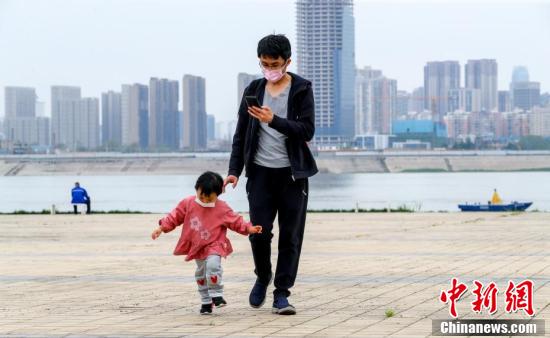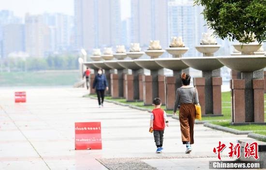 3月26日,武汉汉口江滩,小朋友在江边广场玩耍。