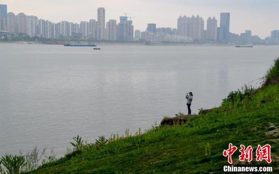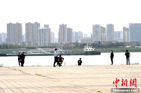 3月26日,武汉汉口江滩,市民在江边赏景。