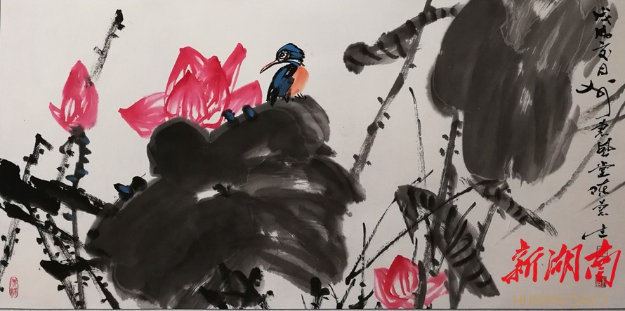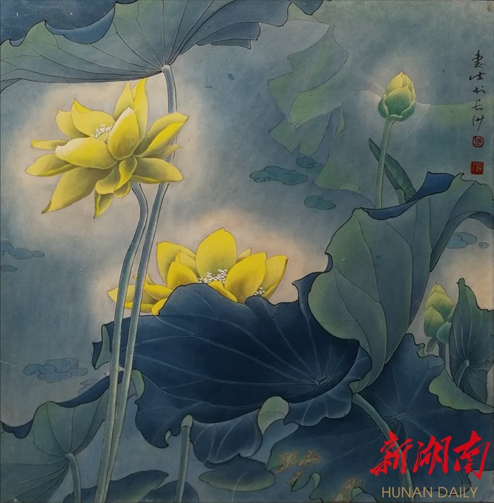 他的传统功力是十分地道的,特别是工笔花鸟画,已经不再是原来传统意义的工笔,而是有着突破和创意的工笔画,明显有两个特色,即工写结合和虚实结合。惠生勇于追求工笔画中的写意性,把抽象与具象相结合,写实与写意相融通,使两者尽力地统一协调,以显示画面的生命与活力,这是一;其二就是虚实结合,实者,主体突出,精雕细刻,惠生注重虚实的相辅相成,使其笔下的画面更显出禽之玲珑多姿,水之涟漪多态,花之生动多致。