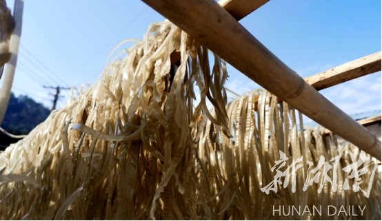 湖南日报·新湖南客户端12月30日讯(通讯员 吴笛)晴朗冬日,在壶天镇南岳坪村景星农产品种植专业合作社的院子里,一排排青褐色的红薯粉整齐地挂在竹竿上晾晒。生产车间里热气腾腾,制粉师傅们熟练地打粉磨浆、蒸煮、上挂、轧粉条……厂房内飘出浓浓薯香。