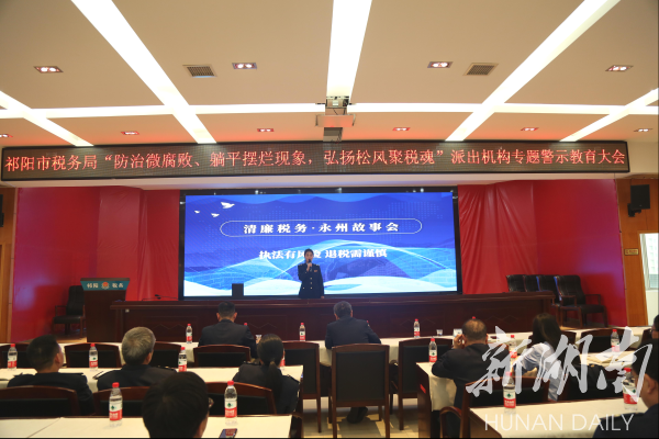 湖南日报·新湖南客户端4月13日讯(通讯员 黄亦斌)4月11日,国家税务总局祁阳市税务局召开派出机构专题警示教育大会,通过观看警示教育片、案例剖析、微故事宣讲等方式,督促引导一线执法服务的干部坚定理想信念,自觉遵规守纪。