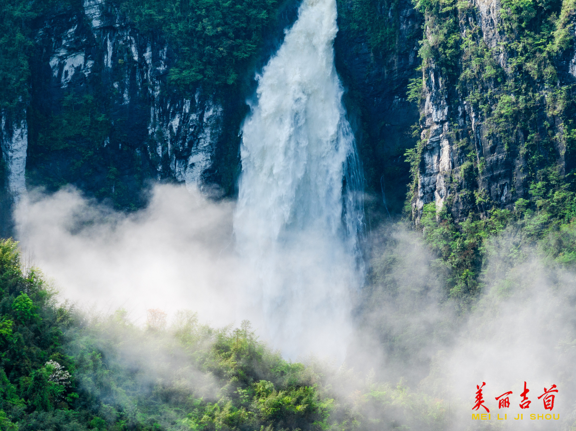 大龙洞瀑布:一挂白练 满谷烟云
