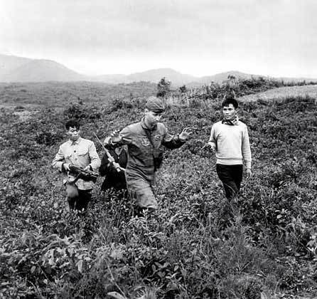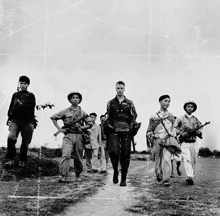 美国空军上士Hayden Lockhart在广平省跳伞后被越南民兵俘虏。(1965.3.2)