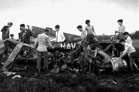 越南人查看在Ca Mau Penisual击落的美国海军战机(1970.5.22)
