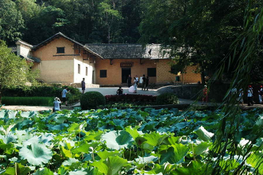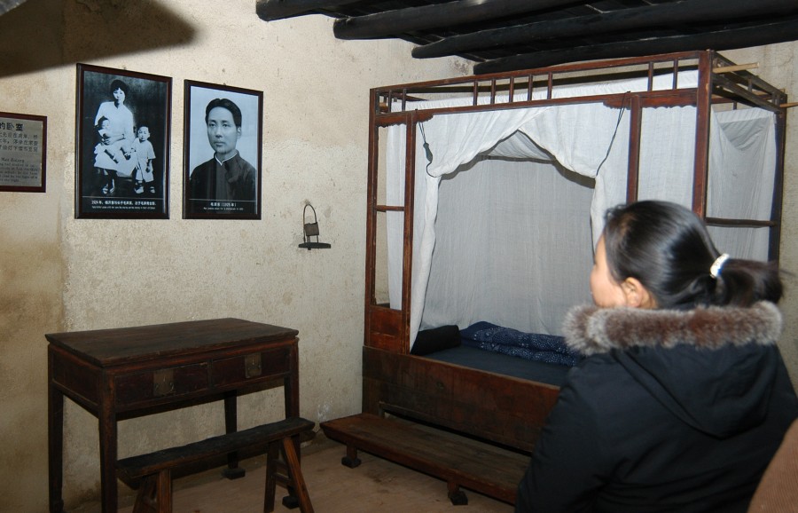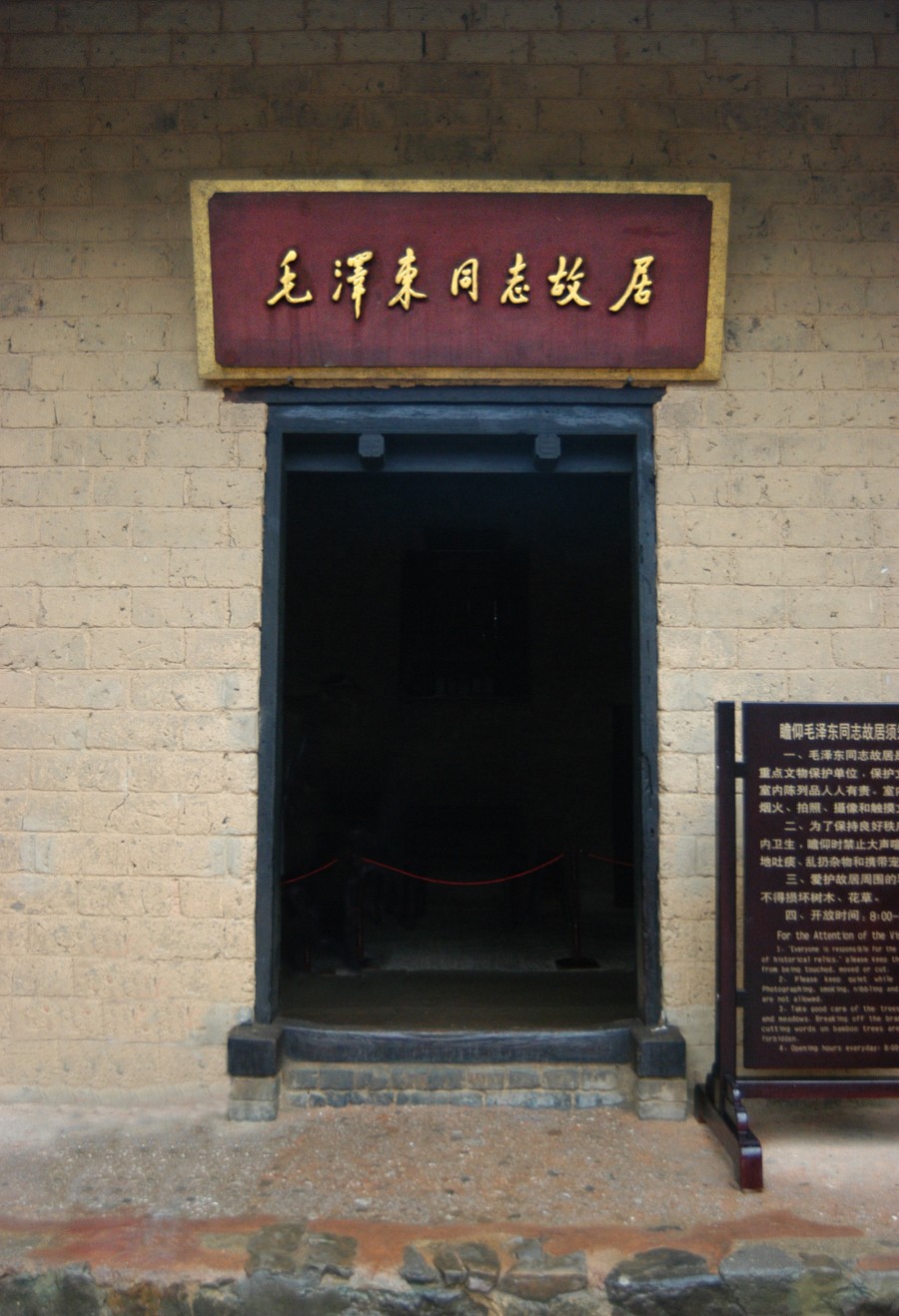 故居前水塘的水依然清亮如昔。沿着新用红绸线隔离开的路径,踏着用胶木板垫好的游览通道,从堂屋到厨房再到天井,一直延伸到故居的每一间房间,人们摩肩接踵地走进心中的“圣地”,眼观耳听,不愿漏掉一丝一毫的细节。由故居正门进入,由厨房向东过横屋,便至毛泽东父母的卧室,墙上挂着毛泽东父母遗像。毛泽东的卧室与其父母卧室相邻。由毛泽东卧室向里,是一个长约7米多的天井,天井西南角是毛泽覃的卧室,毛泽民的卧室则在整栋建筑的最后。虔诚的人流向前缓缓挪动,虽显拥挤但秩序井然,陪同的管理人员说,为了加快参观速度,一般不要求导游在屋内讲解,同时也不准照相,因为闪光会对故居墙壁产生有害的化学作用。