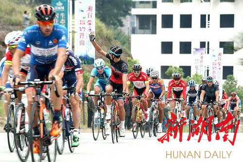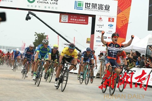近130名世界顶尖自行车手,围绕崀山北大门与宏基华天酒店之间的S218崀山大道进行10圈角逐,单圈13.2公里,全程132公里。最终,中国香港队的高肇蔚逆袭成功,夺下象征大中华最佳的白色领骑衫。而个人总成绩第一的黄色领骑衫、冲刺王的蓝色领骑衫以及爬坡王的圆点衫都被来自AMO车队的马蒂亚包揽。