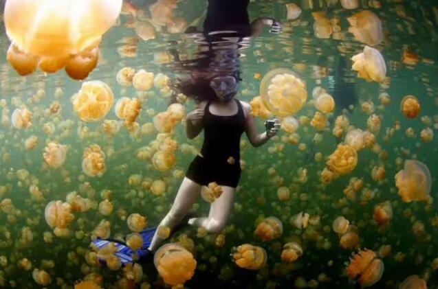 帛琉群岛的黄金水母 帛琉群岛的Eil Malk,海地下有一群热闹的黄金水母。