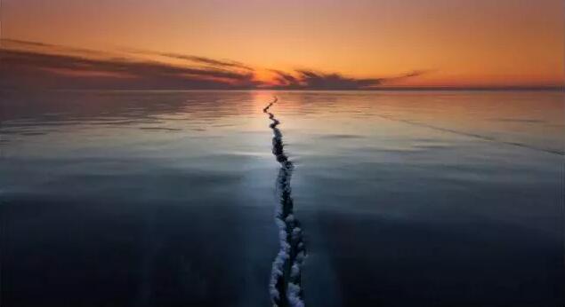 贝加尔湖上深不见底的裂缝 俄罗斯的贝加尔湖,是最古老也是最深的地点,强大的霜冻与急风下出现了不同寻常的裂缝。