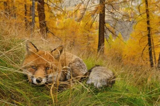 国家公园里隐身的狐狸 Gran Paradiso国家公园,秋冬的草木已发黄,红色小狐狸收起爱动的好奇心,静静藏匿在充满保护色的秋叶枯草之中。