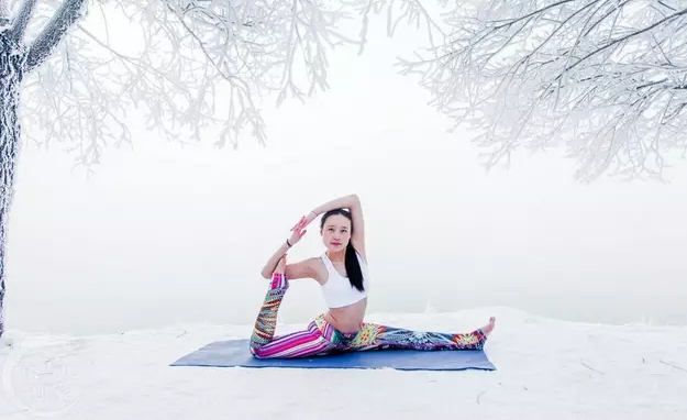 吉林省吉林市,在将近零下30度的气温,魅力的松花江边,一棵精美绝伦的雾凇树下,一位身材姣好的女子舞动着身姿练起瑜伽,与江边的雾凇美景浑然一体。