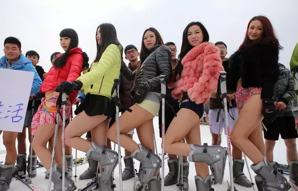 江苏徐州,督公山滑雪场几名身材火辣的美眉下半身只穿内裤滑雪,任性裸露修长美腿,热辣抢眼。