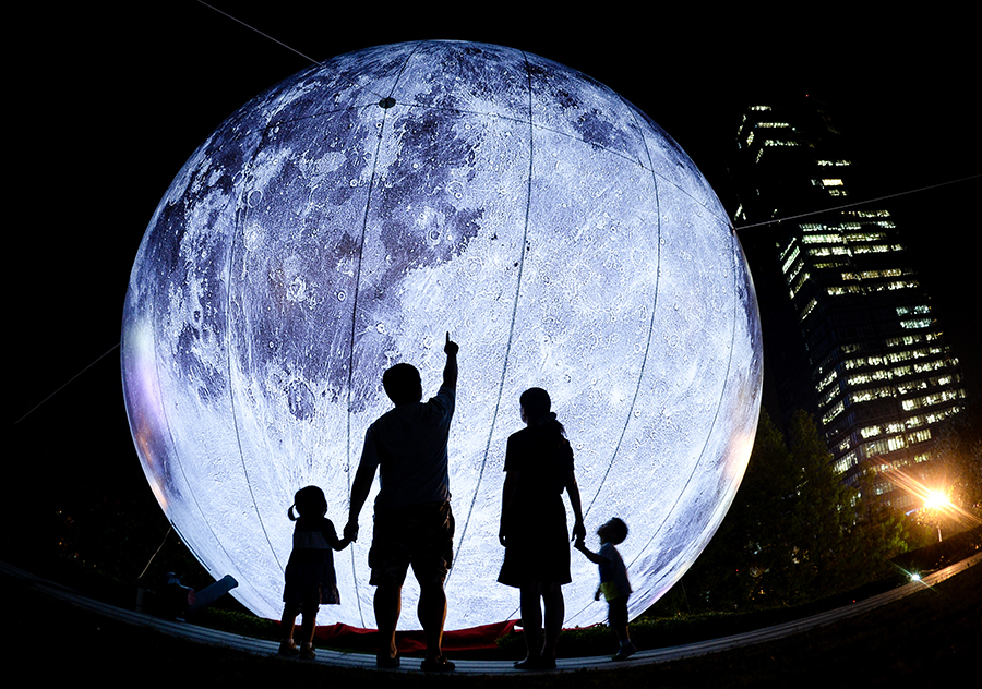 江苏南京的崔晓(左二)一家拍摄的“仰望”全家福(2015年9月8日摄)。2012年11月,崔晓家添了一对龙凤双胞胎左左和右右,目前兄妹俩已经3岁多。 新华社记者 李响 摄