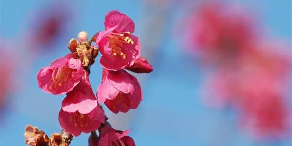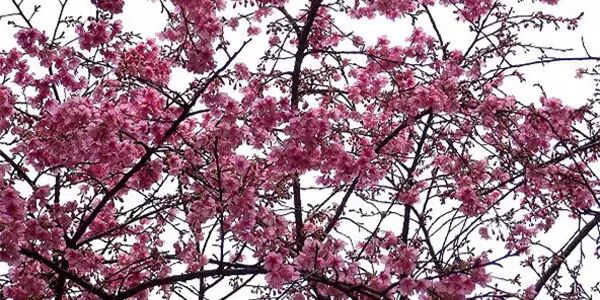 寒绯樱:也叫钟花樱桃,福建山樱花,是开在寒冷的早春的红色樱花。寒绯樱确实可能算是中国内地一年里最早开放的樱花,花期一般在2月中旬,花序就像一个个串着的长铃铛。