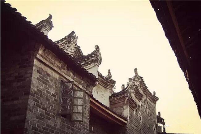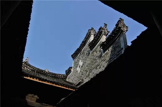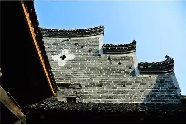 漂亮的三级封火墙层层叠叠,屋檐下还有书画彩绘。