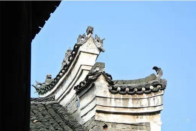 马头墙上的翘角也做得很精美。