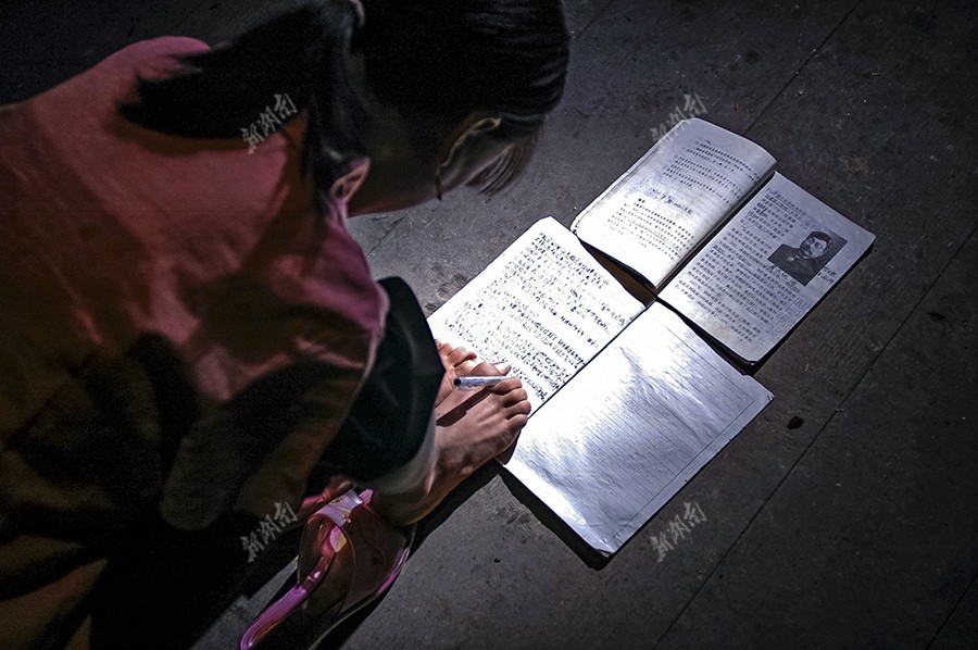 她在山上放牛放羊时光着脚板满山跑。她会绣花,那是站人家旁边看几次回来练好的。她用脚,花费的功夫比别人多,也苦,但不学会就不罢休。她奶奶还说,这孩子命硬,从四岁断臂以后便再没有得过病,连小感冒都没有。