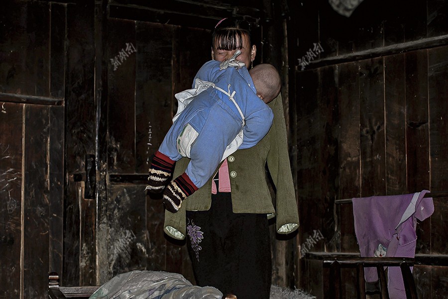 邻居家里的大人下地干活去了,向丽萍给他们带孩子。