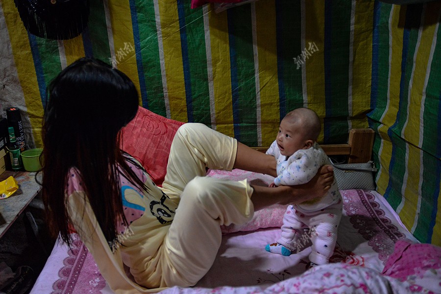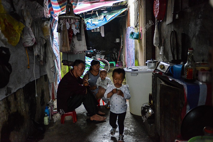 她和广西来的年轻人和孩子,爸爸妈妈加上弟弟的两个孩子住在一间中间用砖头隔断的房子里,一家七口靠她爸爸每月四千左右的收入生活。