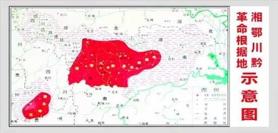 1934年至1935年,贺龙、任弼时、萧克等创建湘鄂川黔革命根据地,粉碎了敌军的围堵和封锁,歼灭国民党军2万多人,完成了牵制敌人、配合中央红军长征的任务。