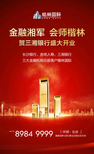 12月26日,湖南三湘银行落户楷林国际,并于当天正式营业。湖南三湘银行成为暨长沙银行全国总行、吉祥人寿全国总部后第三家落户楷林国际的全国总部金融机构。届时,湖南四家金融机构的全国总部,三家选择落户楷林国际,金融湘军胜利会师楷林国际,在此集结发声。