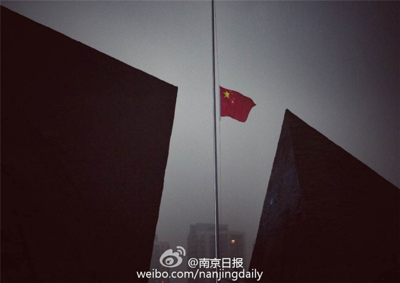 12月13日7点整,在南京大屠杀死难者国家公祭仪式举办地——侵华日军南京大屠杀遇难同胞纪念馆内,举行升国旗和下半旗仪式。来自北京的国旗护卫队,在侵华日军南京大屠杀遇难同胞纪念馆将国旗升起后又徐徐降下,为死难同胞下半旗致哀。