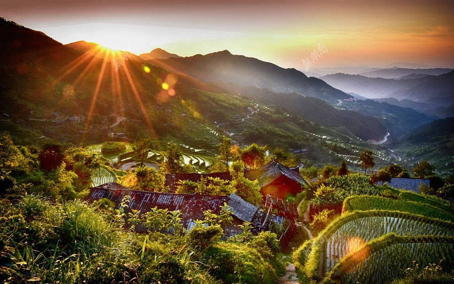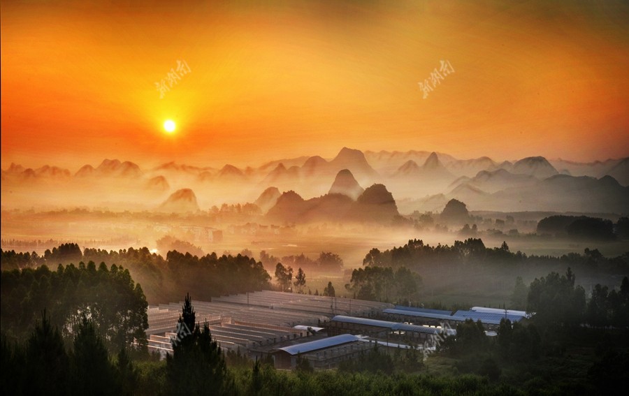 2016年5月11日,永州市宁远县十里画廊,金色的朝霞之景惹人醉。