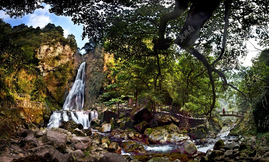 2016年12月29日,株洲市炎陵县神农谷,瀑布直泻而下,溪水潺潺,古树参天。