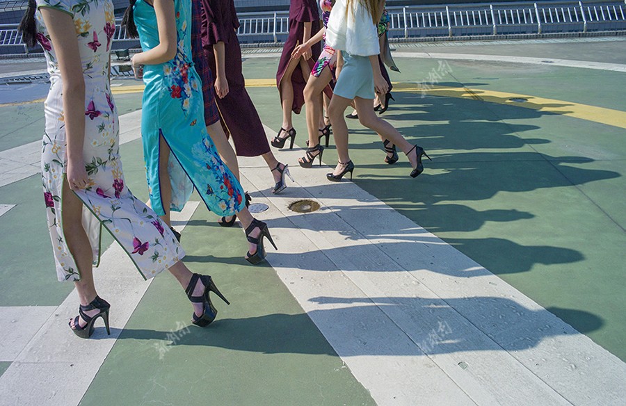 11月27日,长沙万家丽路,训练中的新丝路参赛模特。